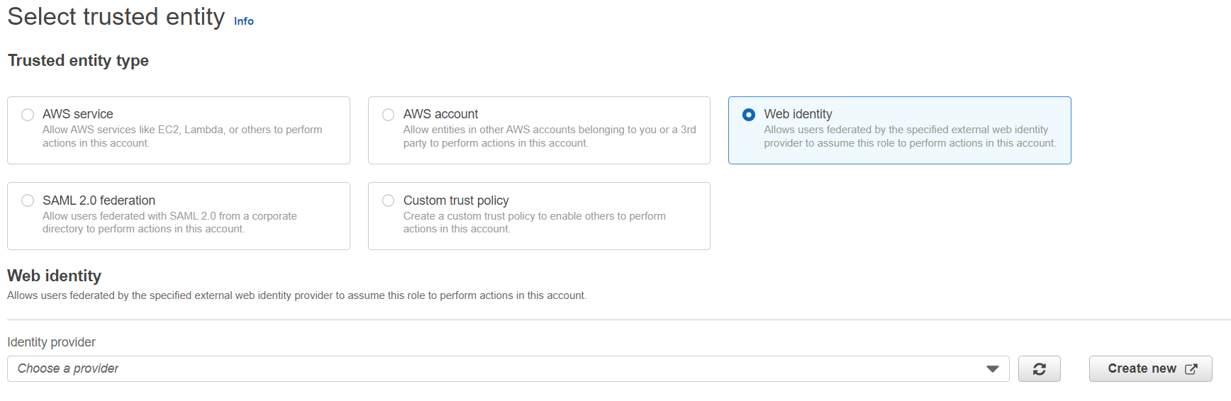 In Select type of trusted entity, click the Web Identity tile.